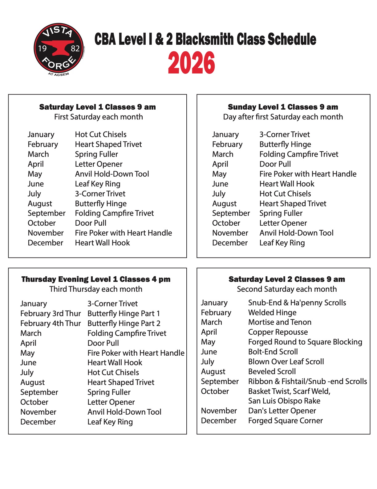 Level 1, 2, 3 and Open Forge require a coal fee of $30 payable to the Instructor on the day of class.
